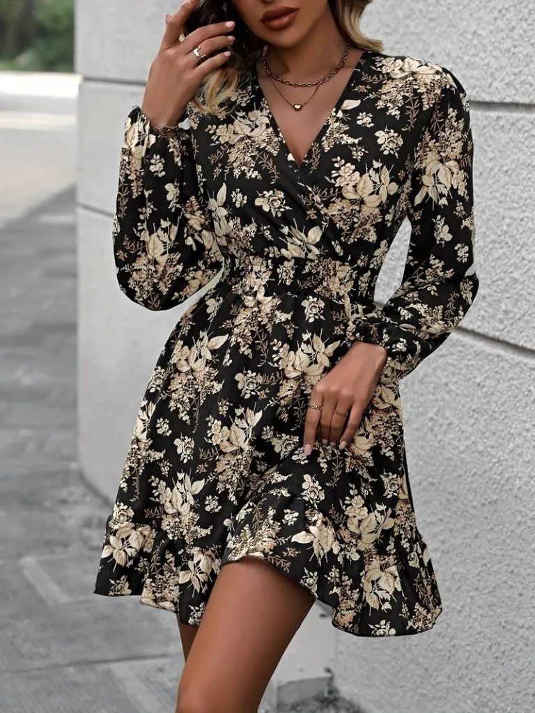 فستان نسائي قصير بكسرات وتفصيلة سحاب وياقة دائرية