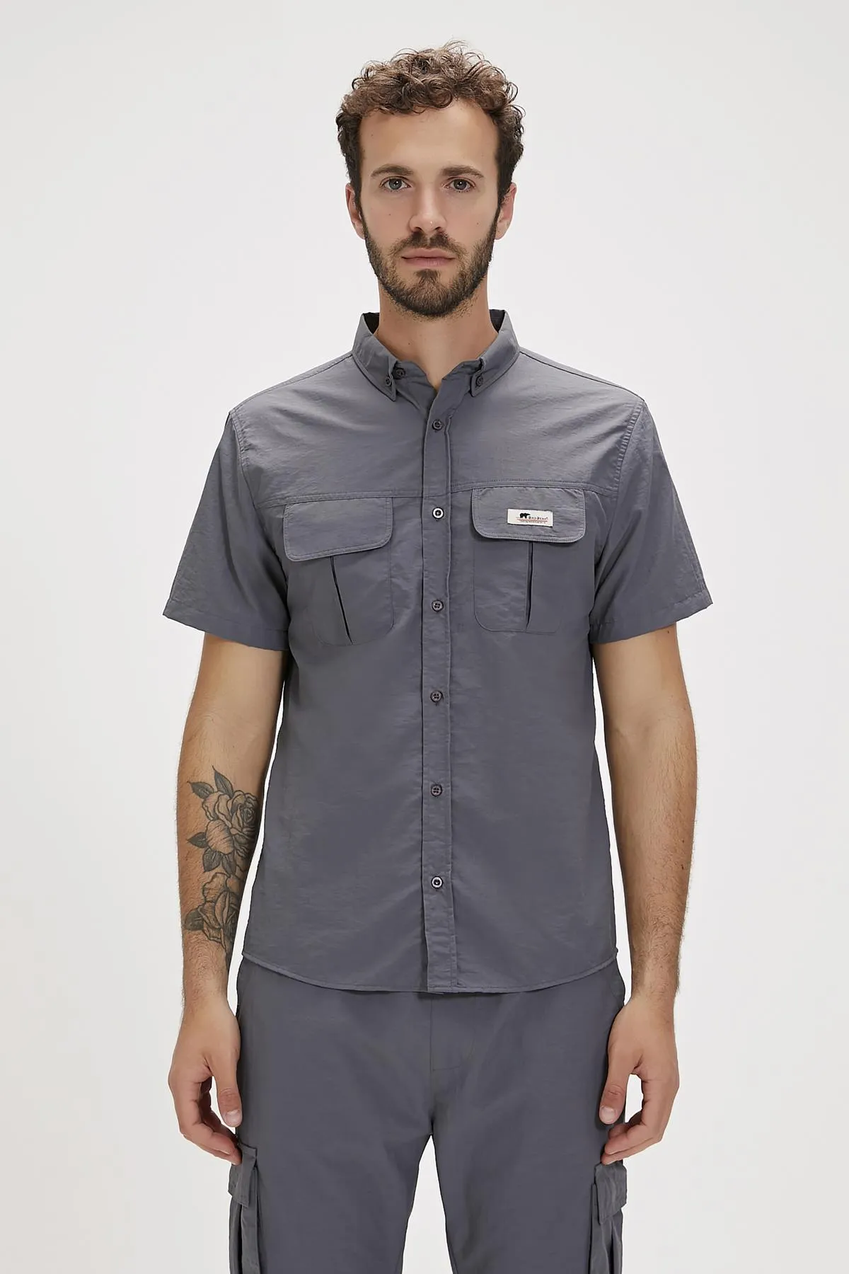 قميص رجالي سادة كبير الحجم بأكمام قصيرة وجيب