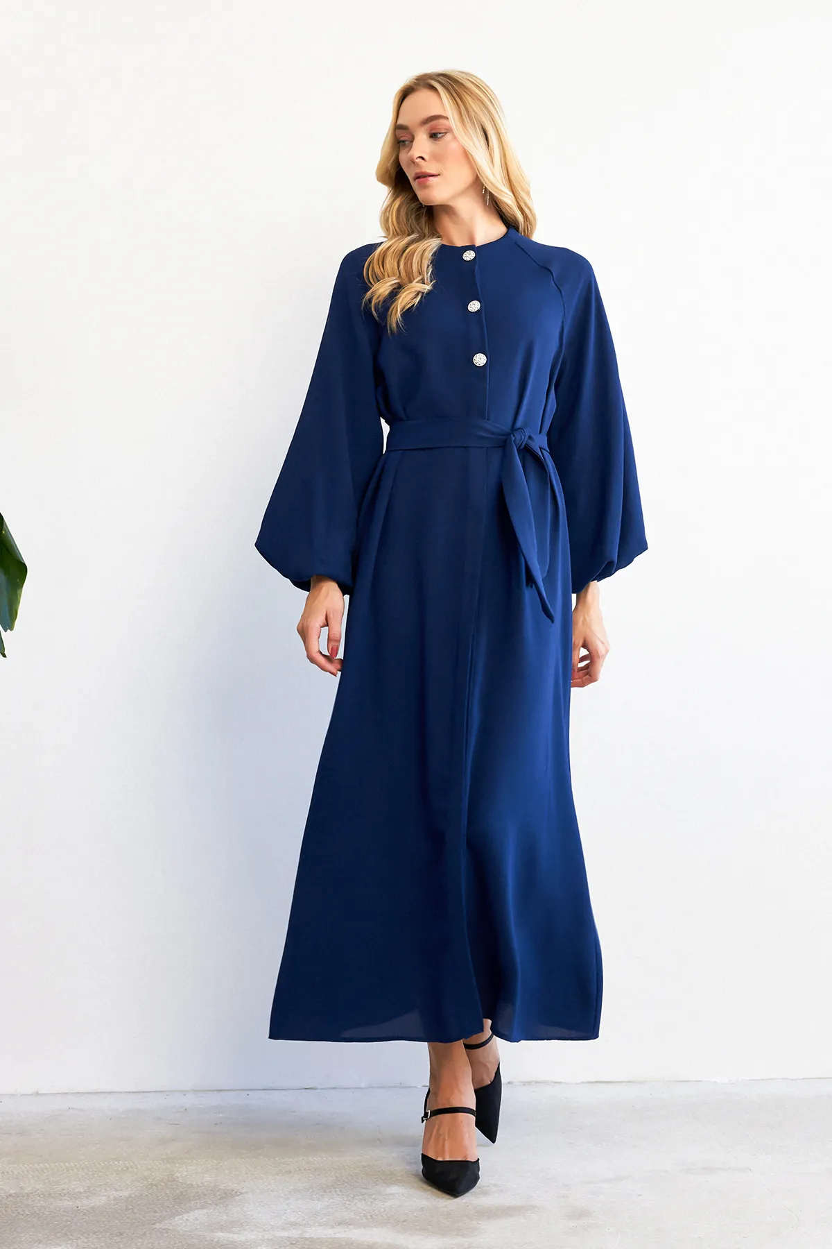 فستان بقصة A وأكمام واسعة وطبقات ناعمة، إطلالة أنيقة وخفيفة لصيف العيد.