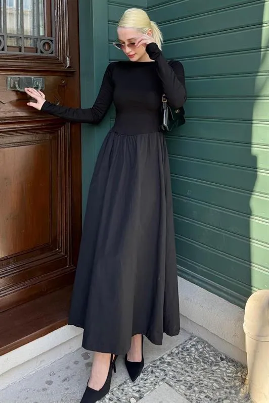 فستان طويل فيسكون بياقة V وتفصيل جيبين أماميين. تصميم عملي يناسب الحركة اليومية والتنسيقات الخفيفة للنساء.