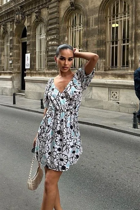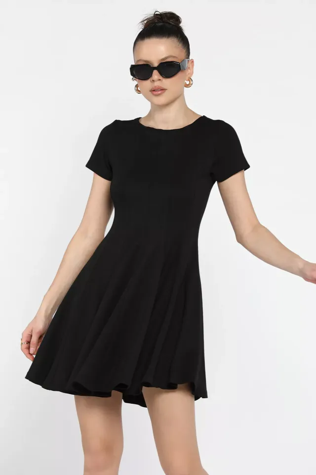 فستان ميدي نسائي بتصميم واسع وطيات عند التنورة مزين بحزام عند الخصر وفتحة جانبية لإطلالة صيفية أنيقة للنساء