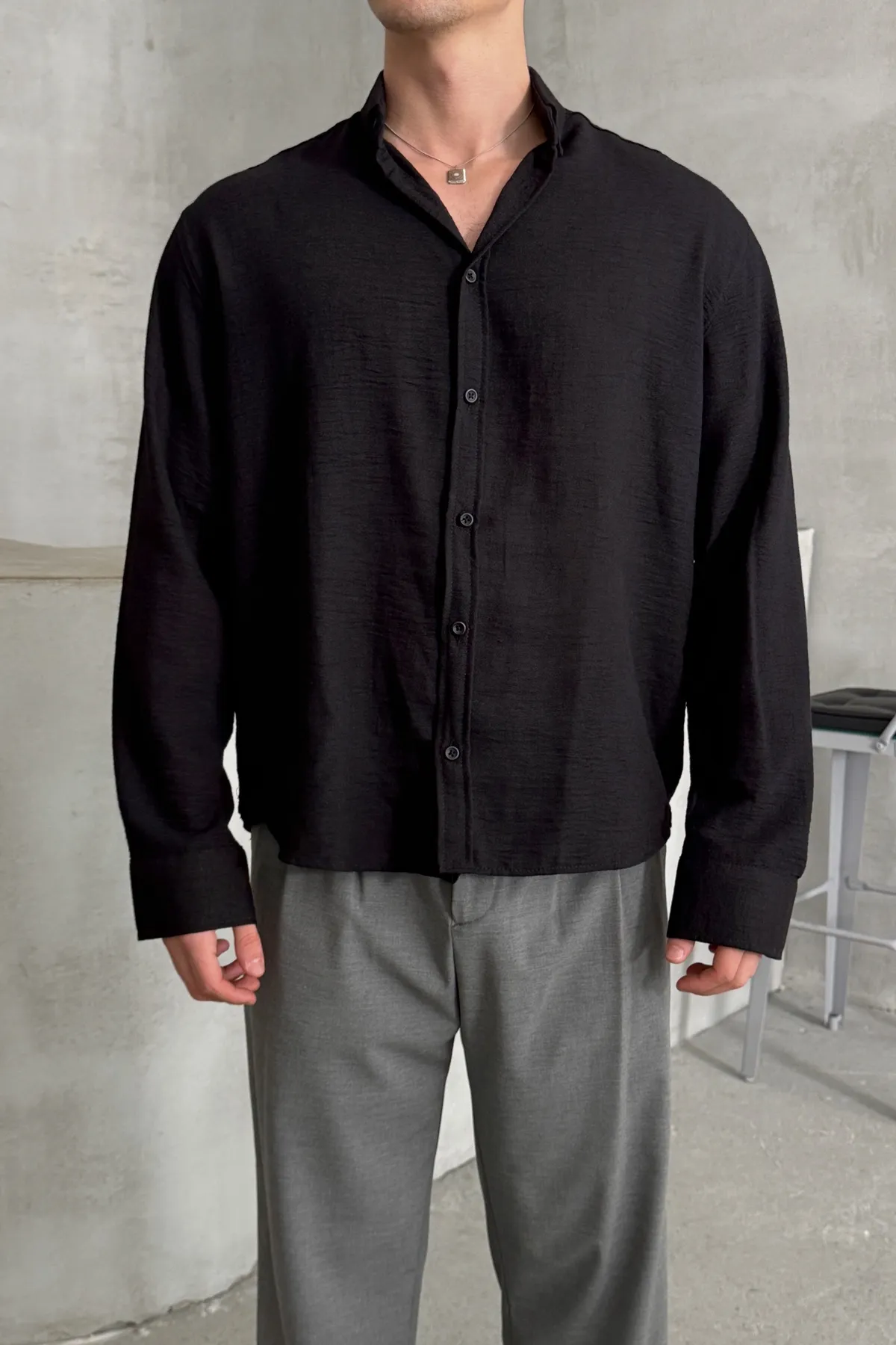 قميص سادة بأكمام طويلة وأزرار وياقة بأزرار للرجال