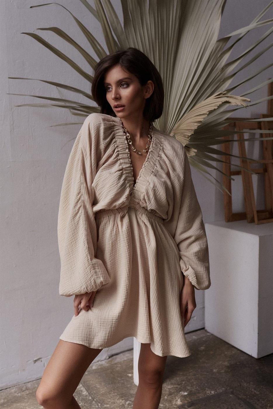 فستان ميدي بكسرات وأكمام قصيرة مع ياقة قميص وسحاب أمامي لإطلالة يومية عصرية