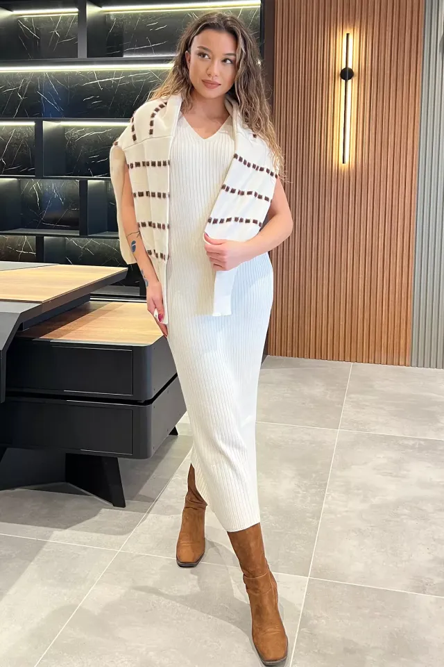 فستان نسائي بياقة بولو وأكمام قصيرة مطوية