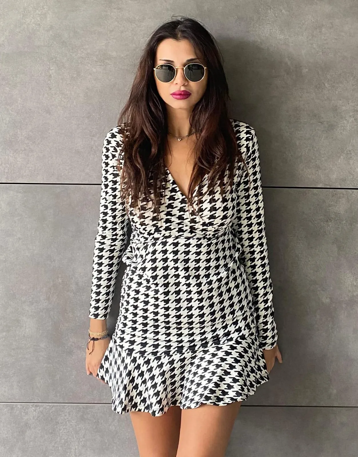 فستان نسائي ميدي مجعد بتفصيل دانتيل عند الخصر وتنورة كلوش