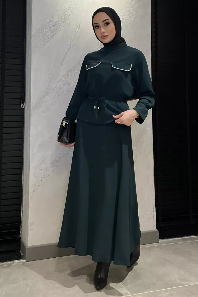 طقم تنورة ماكسي بدون أكمام بأزرار أمامية للنساء