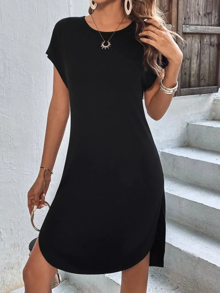 فستان ميدي منقط بقصة A-Line وياقة قميص مع أكمام قصيرة وأزرار أمامية ورباط خصر لإطلالة يومية خفيفة