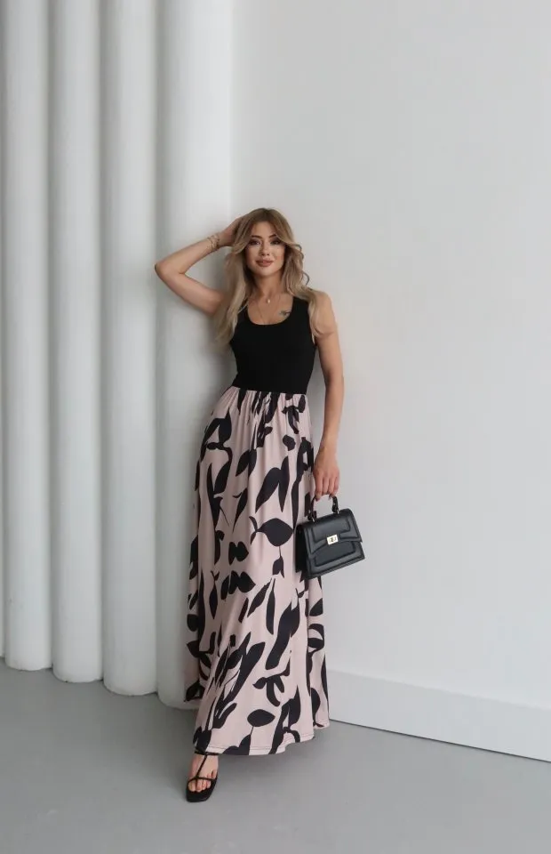 فستان ميدي فيسكوز نسائي بياقة V وأكمام قصيرة مع جيبين وقصة كلوش. تصميم مريح مناسب للإطلالات اليومية الصيفية.