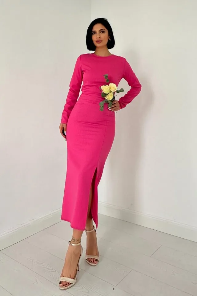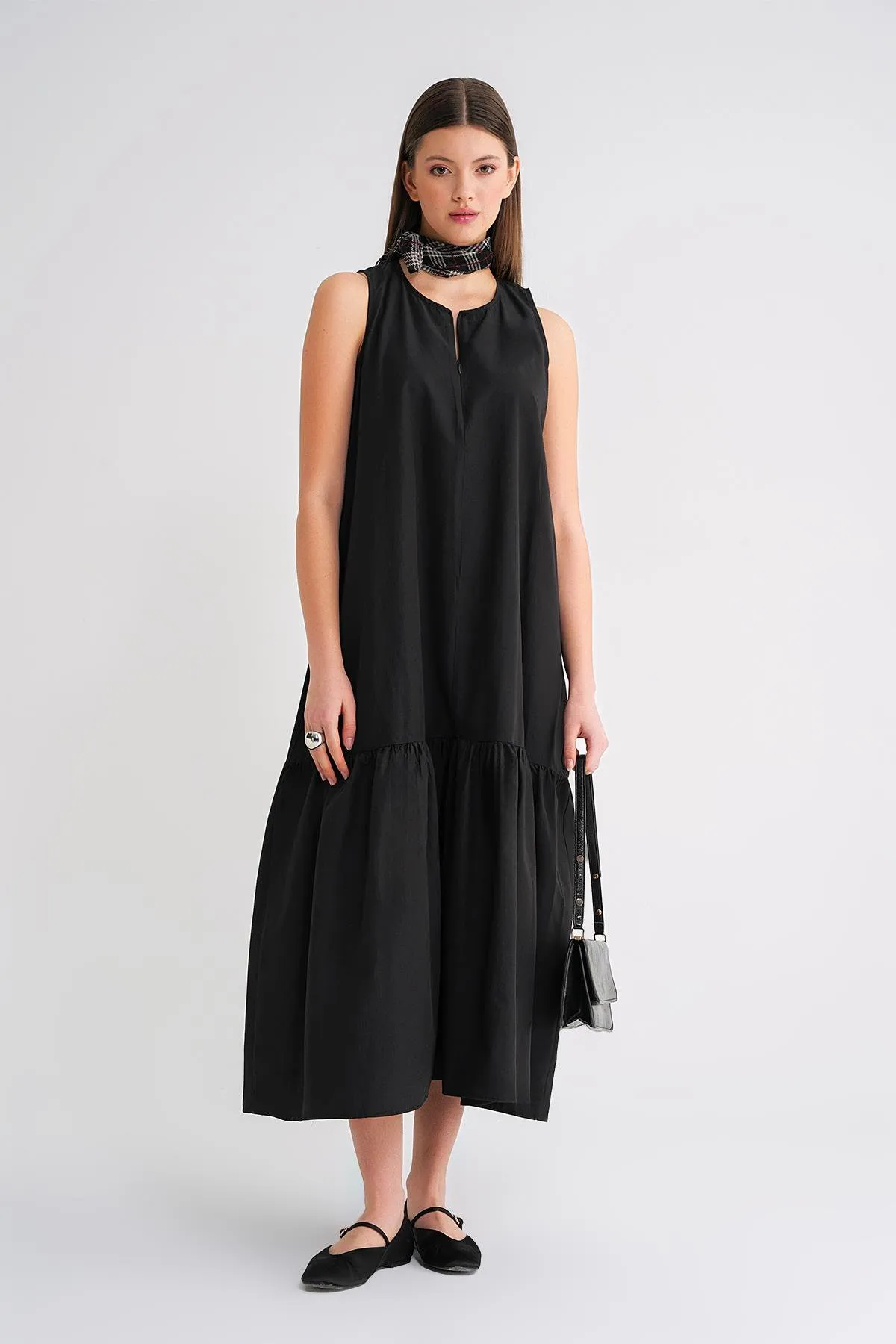 فستان مخطط بكسرات وياقة قميص مع أزرار أمامية للنساء