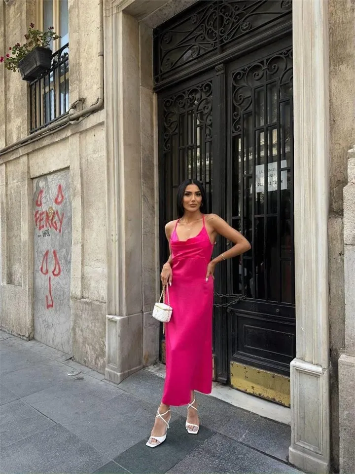 فستان نسائي ميدي منقوش بطبقات وياقة صينية وأكمام بالون