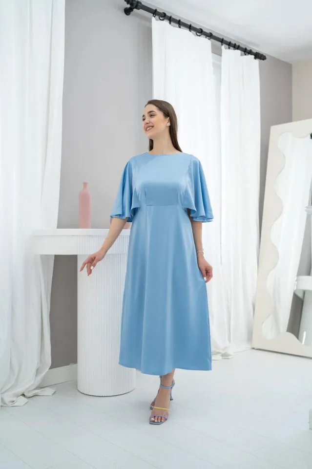 فستان ميدي كلوش بتصميم كتف مكشوف وأكمام بالون قصيرة مع حزام مجمع. يتميز بنقشة وتفصيل طبقات، مناسب للتنسيقات الصيفية الأنيقة والمشاوير اليومية للنساء.