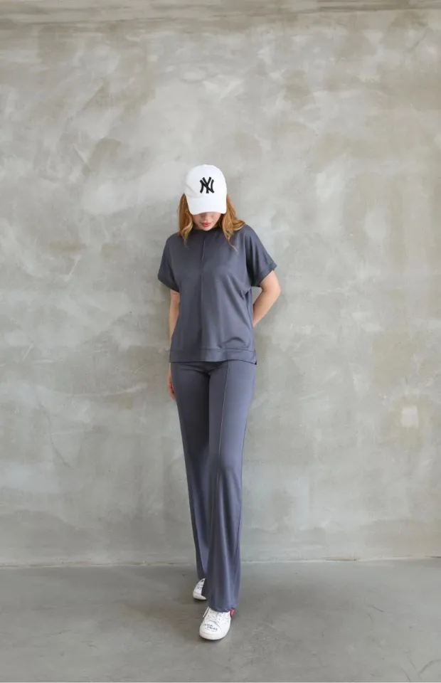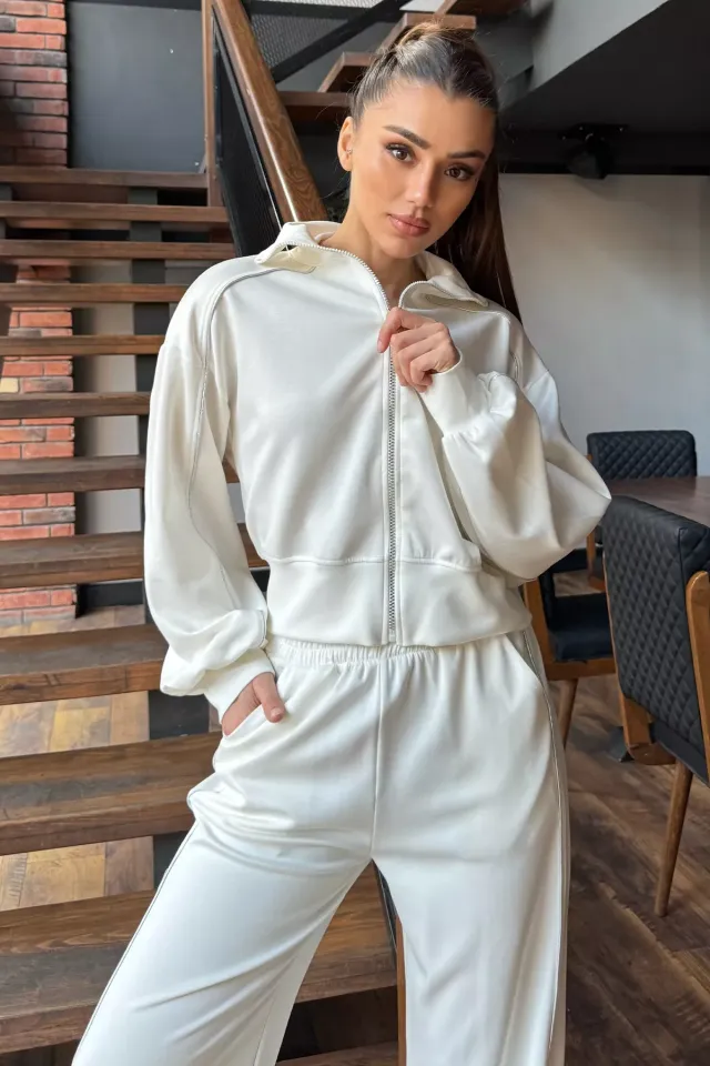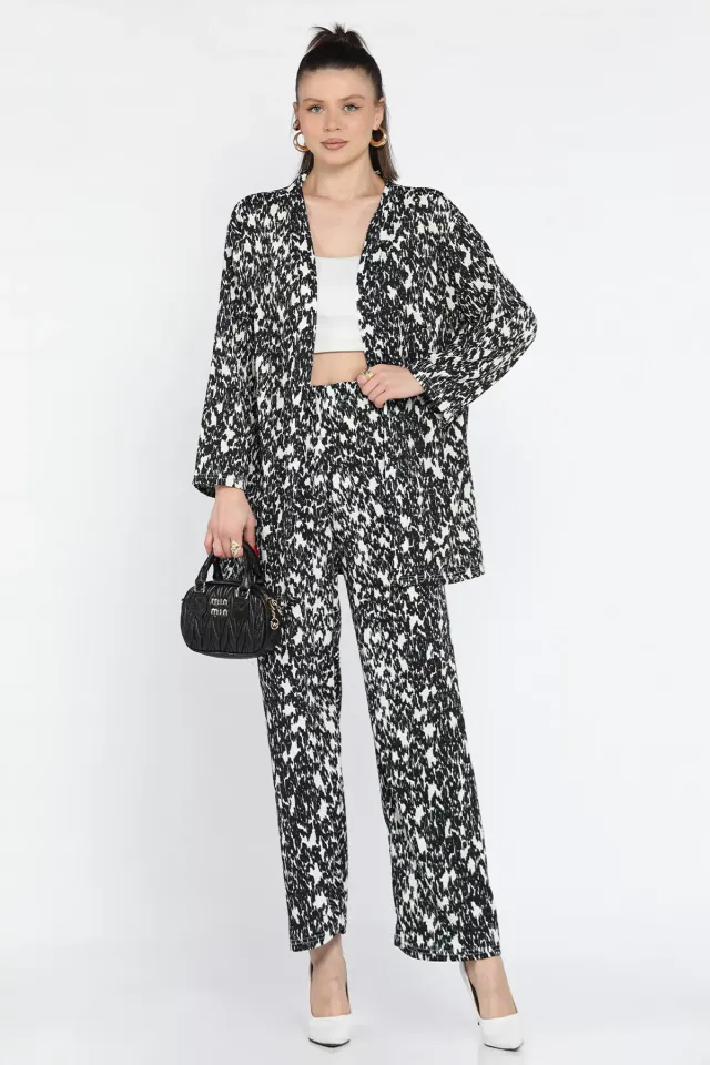 كيمونو بأكمام طويلة مخطط مع سروال واسع برباط من الساتان للنساء