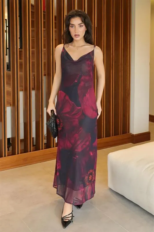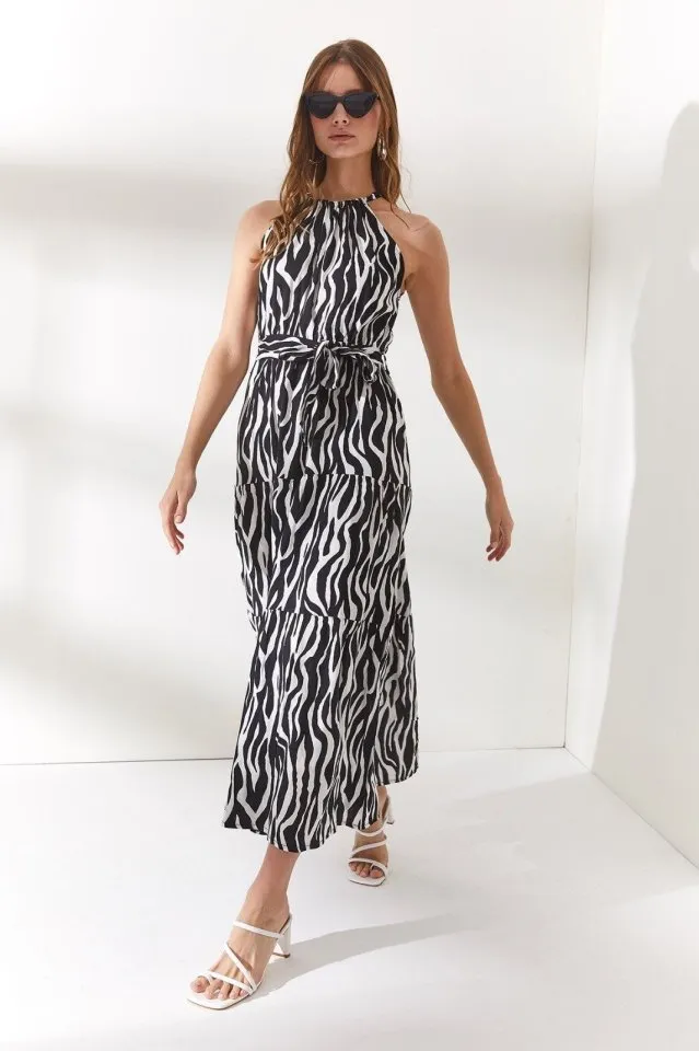 فستان ميدي منقوش مكشوف الكتفين للنساء