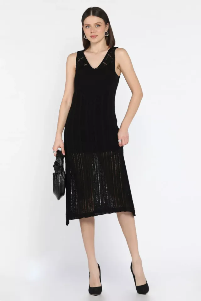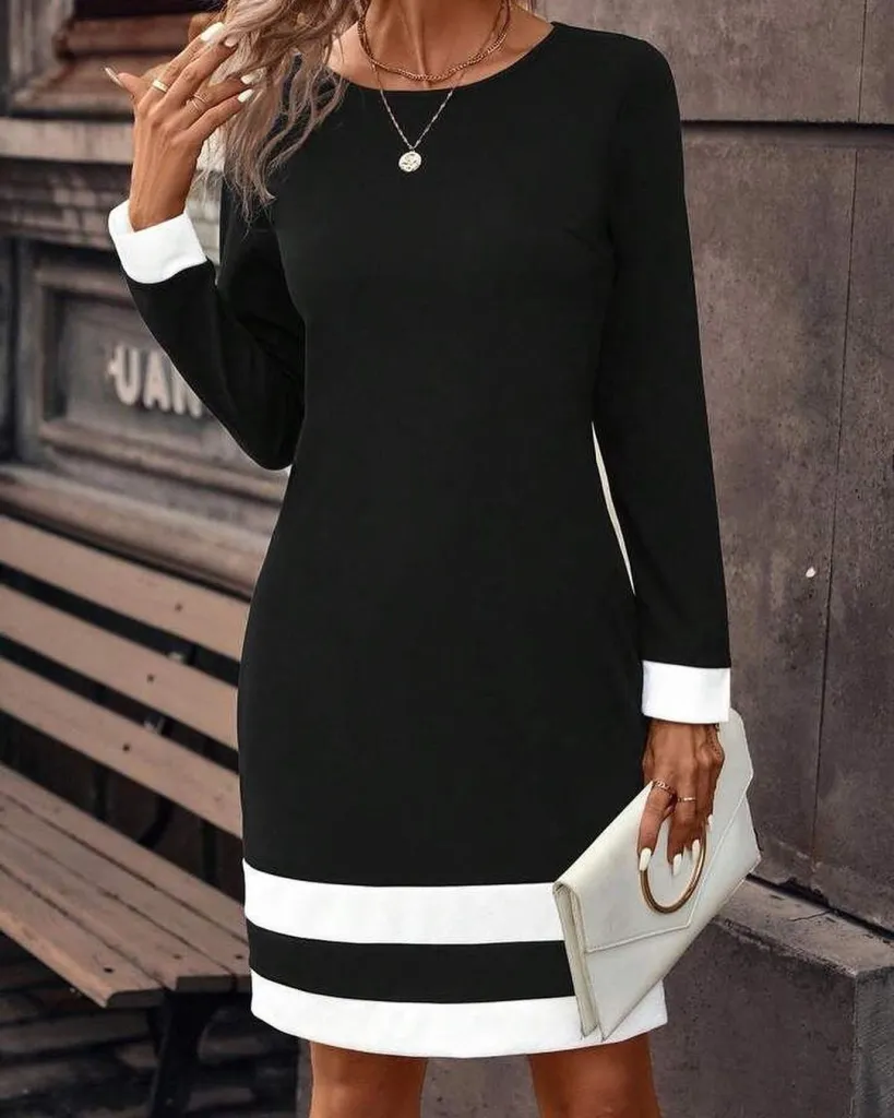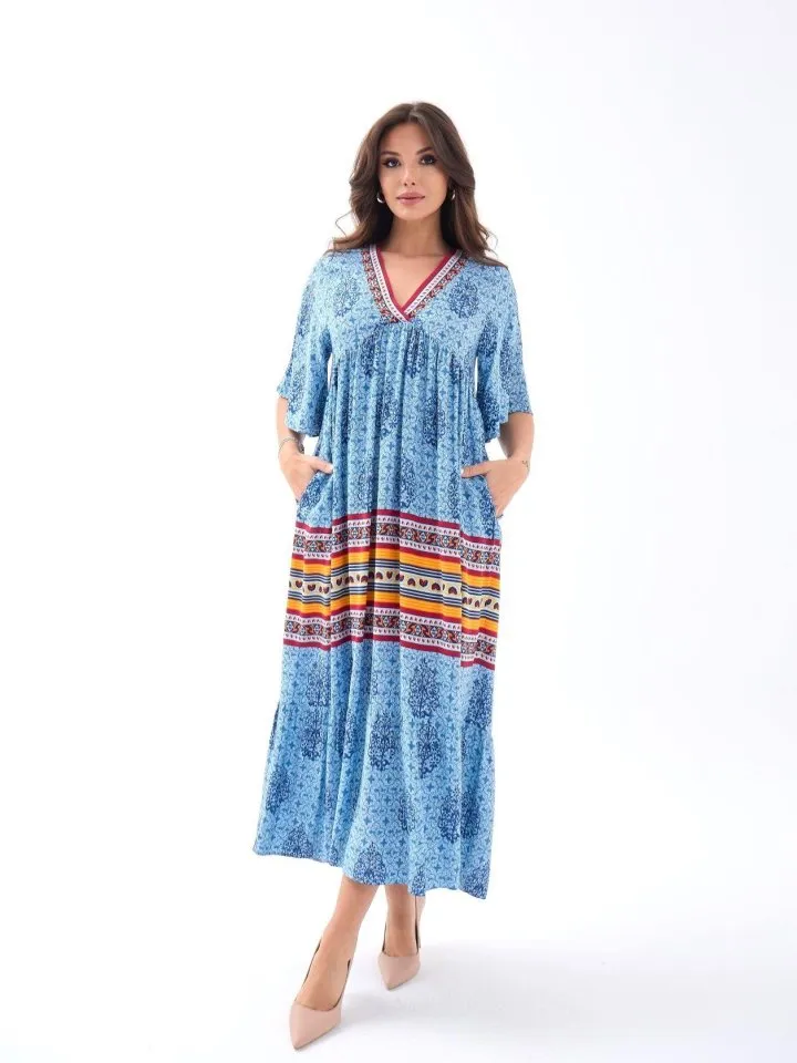 فستان نسائي كاجوال متوسط ​​الطول منقوش بياقة مربعة