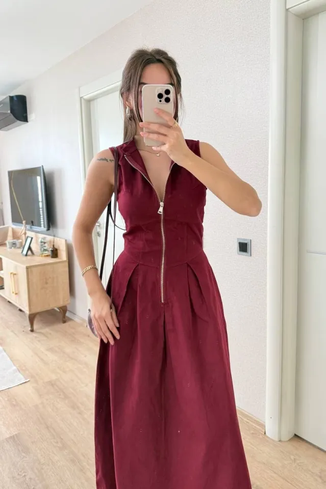 فستان شيفون ميدي بأكمام طويلة و تفاصيل شق للنساء