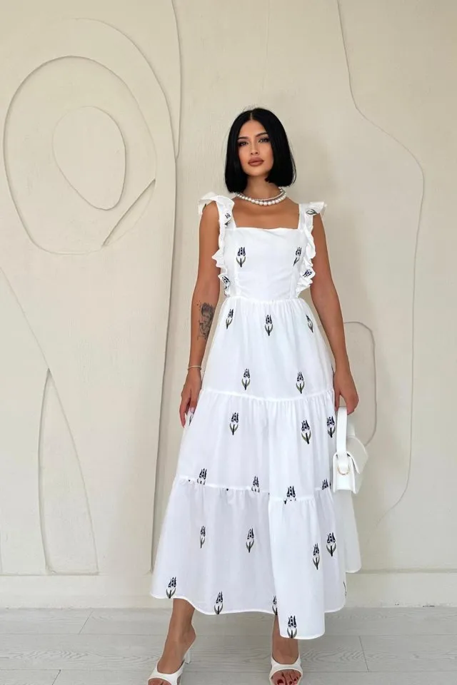 فستان شيفون ميدي بأكمام طويلة و تفاصيل شق للنساء