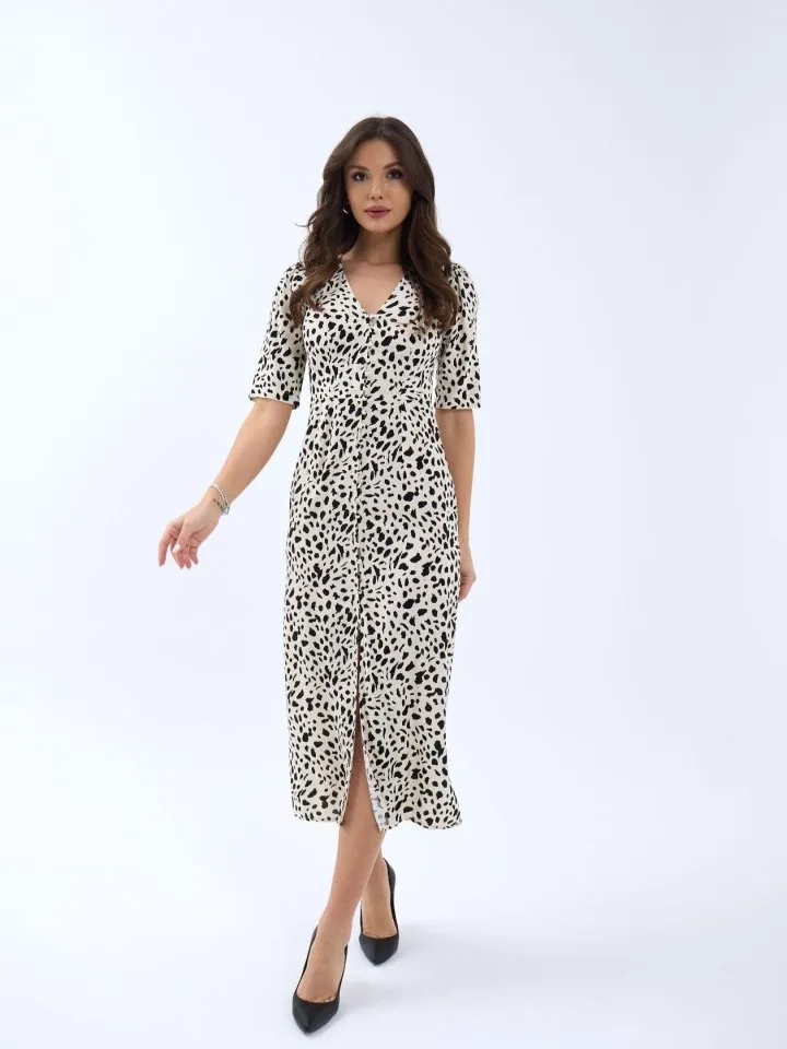 فستان ميني بنقشة نجم البحر بياقة U وقصة A للنساء
