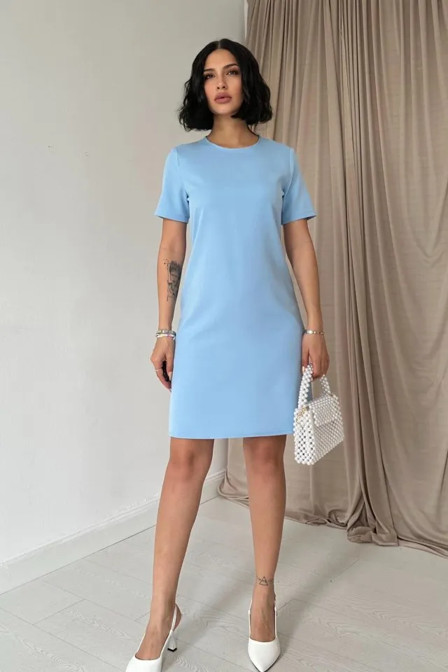 فستان ميدي نسائي فيسكون بياقة دائرية وأكمام قصيرة وشق جانبي