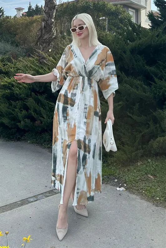 فستان نسائي ميدي من الكتان بياقة دائرية وقصة A بدون أكمام