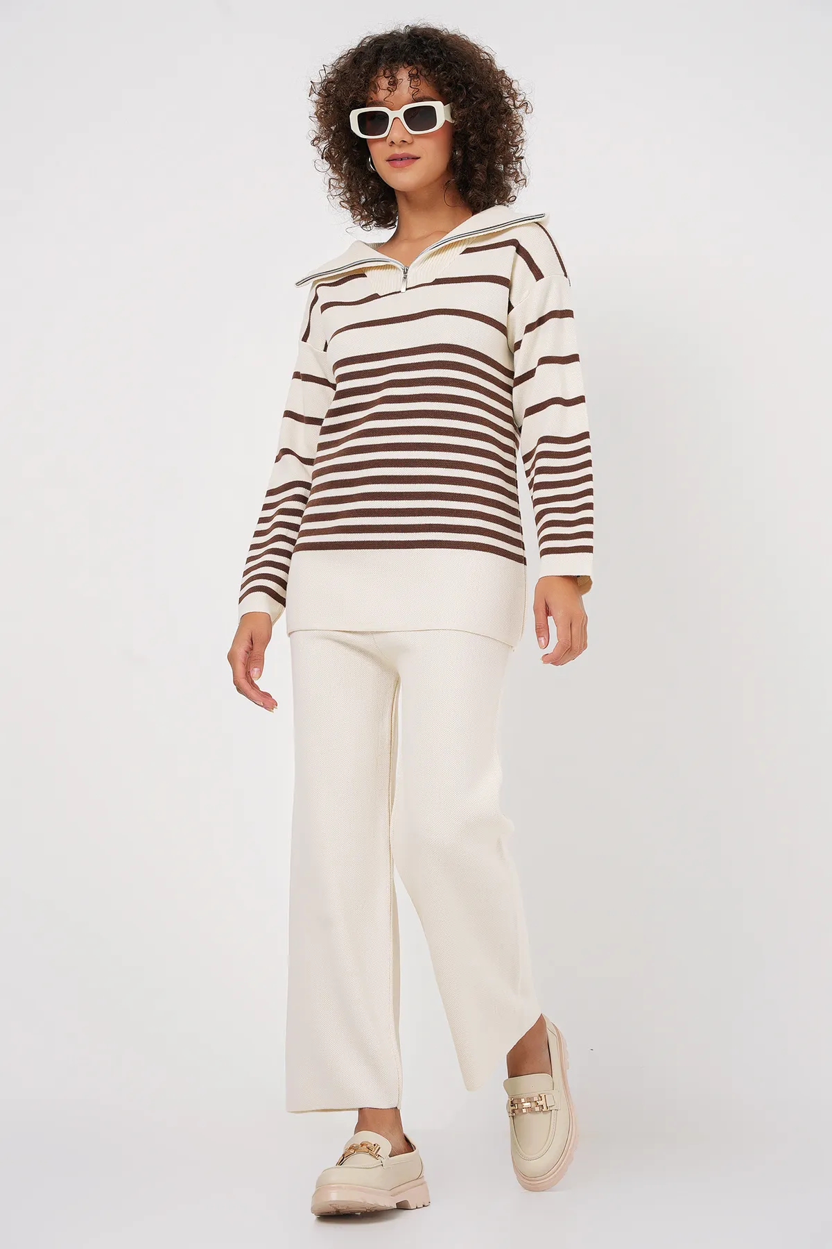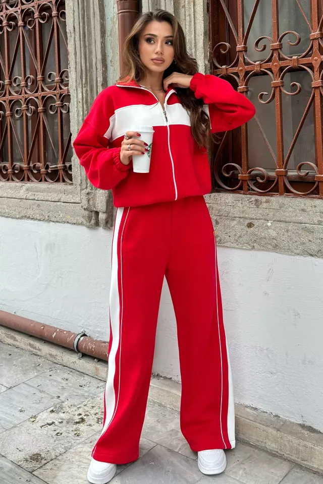 طقم مريح بقصّة متعرجة مع بنطلون واسع الساق للنساء
