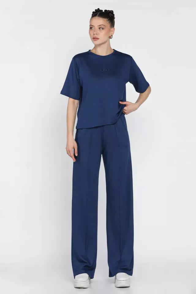 طقم للنساء بفتحة ياقة على شكل حرف V وساق واسعة وتفاصيل غير متماثلة