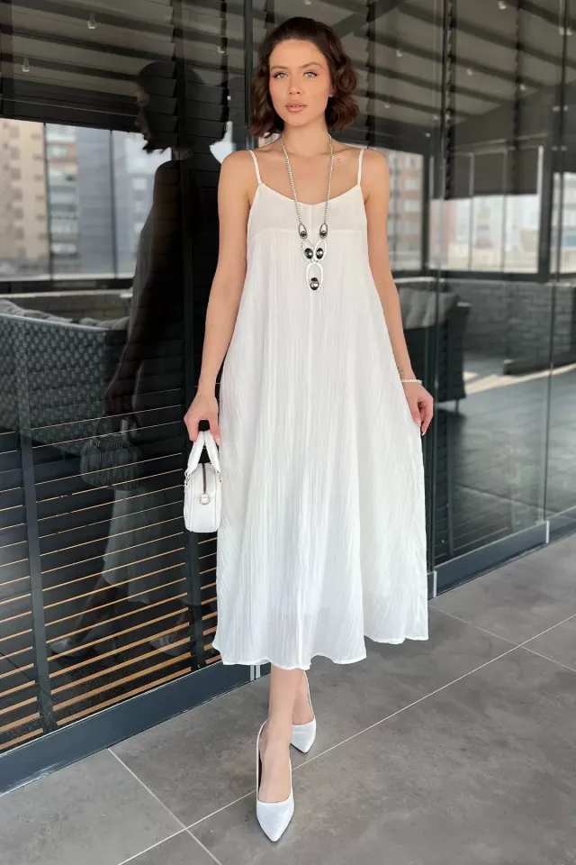 فستان ماكسي بحمالات رفيعة و ياقة مربعة للنساء
