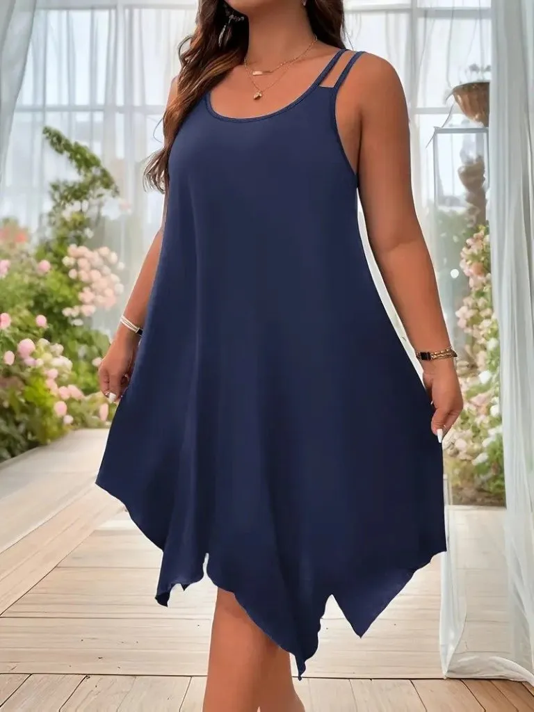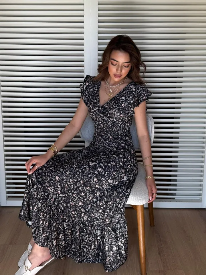 فستان ميدي من الموسلين بقصة A-Line وياقة V وفتحة ظهر لإطلالة صيفية خفيفة ومريحة