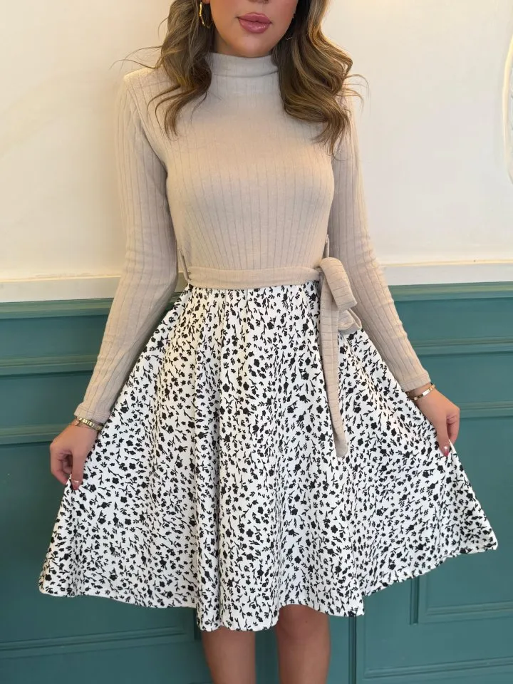 فستان ميدي موسلين بقصة A-Line وياقة V وفتحة ظهر