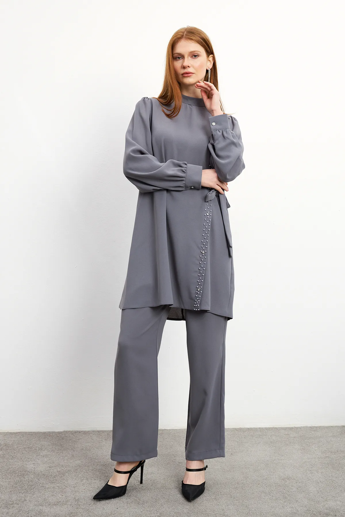 - نوع الأكمام : أكمام واسعة مزمومة من الاسفل