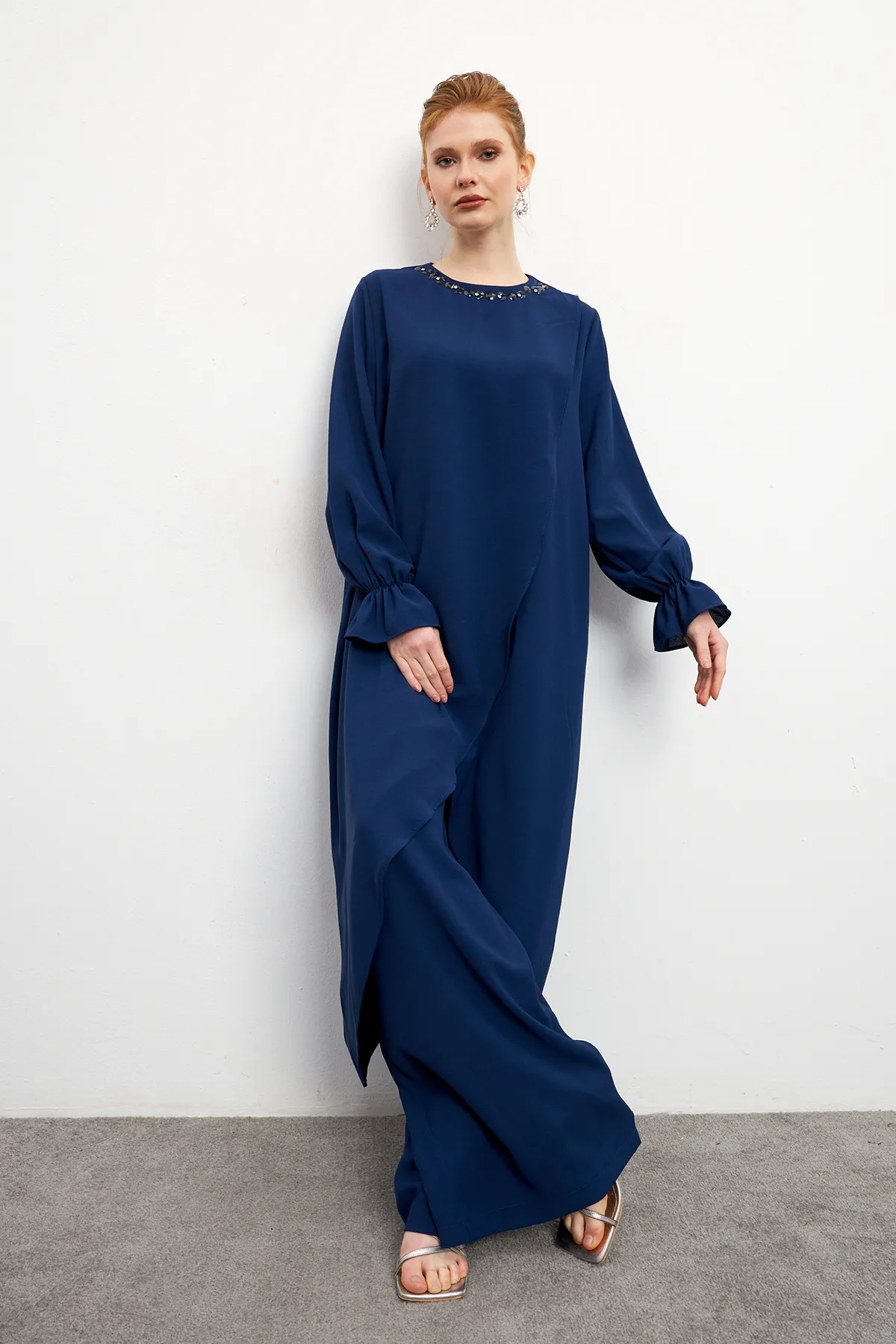 • نوع الأكمام : أكمام واسعة مزمومة من الاسفل
