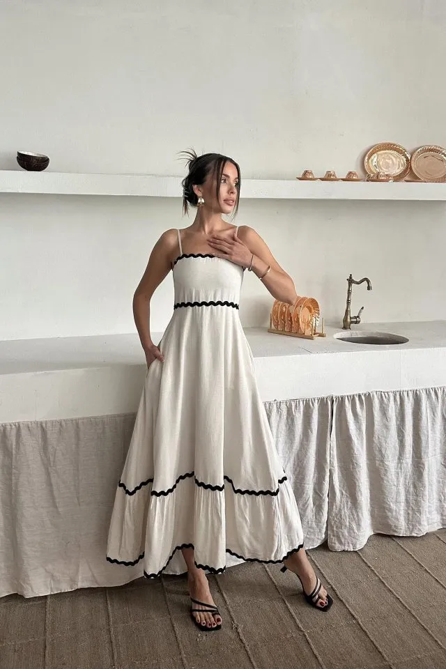 فستان جيب دنيم قصير بتفصيل جيب أمامي، عملي وشبابي لإطلالات العيد الكاجوال.