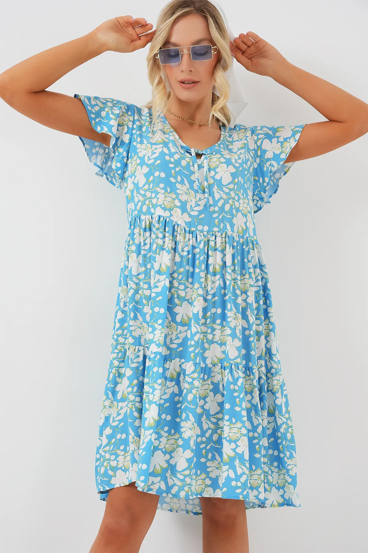 فستان نسائي مناسب للعيد طويل من القماش المجعّد مع خصر مكشوف وفتحة رقبة على شكل حرف V