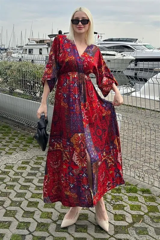 فستان نسائي بقصة كلوش بدون أكمام بياقة V وظهر مكشوف مزين بربطة خلفية، إطلالة أنثوية ناعمة لسهرات العيد.