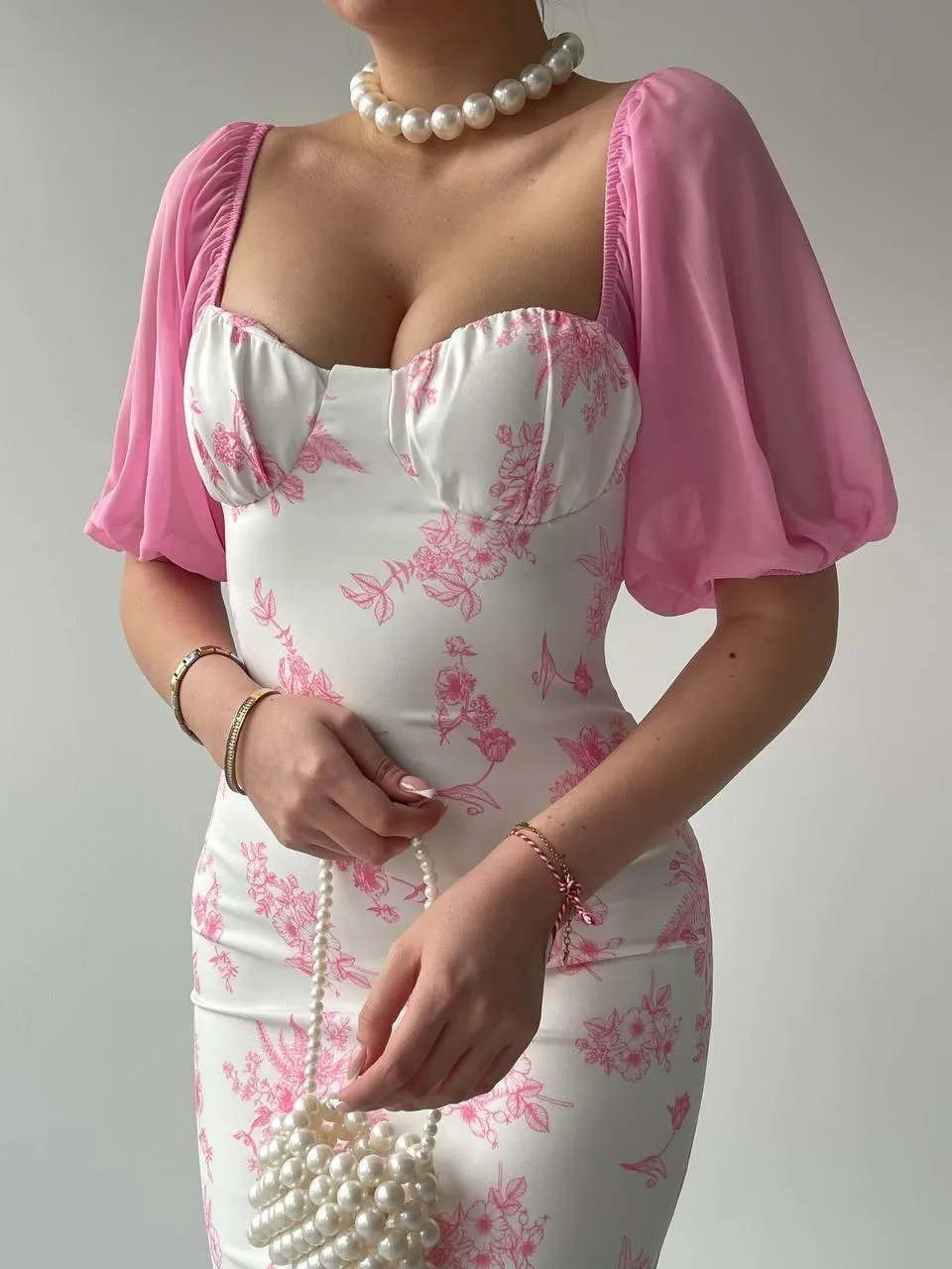 فستان طويل بكتف واحد مع كسرات وكشكش وشق جانبي، مصمم لإطلالة لافتة في سهرات العيد.