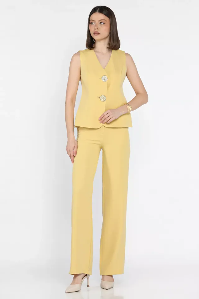 طقم قميص سادة بأكمام منسدلة وياقة قميص مزينة بأحجار الراين للنساء
