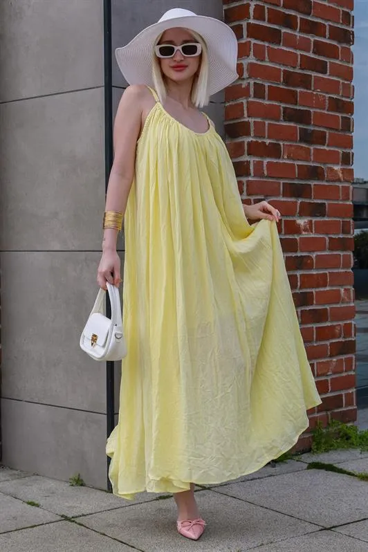 تألقي في العيد مع فستان ماكسي كيوت بقصة A واسعة وياقة V وقصة بدون أكمام لإحساس أنيق ومريح.
