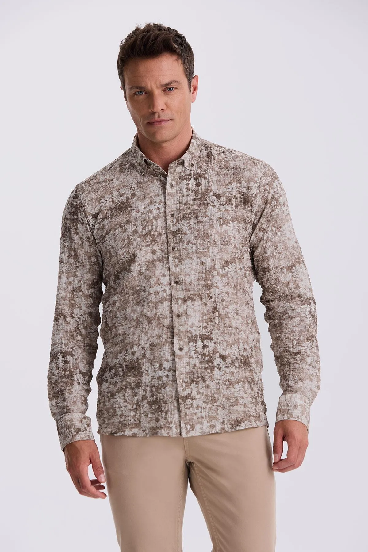 قميص رجالي كبير الحجم، بأكمام قصيرة وياقة على شكل حرف V، وأكتاف منسدلة، مصنوع من قطن ١٠٠٪ لراحة فائقة وقصّة مريحة. مثالي للارتداء الكاجوال. قابل للغسل في الغسالة على درجة حرارة ٤٠ درجة مئوية.