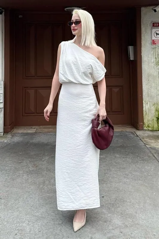 تألقي هذا الصيف مع فستان ميدي بوهيمي من الشيفون بياقة V وأكمام منفوخة وتنورة مطوية بخصر مطاطي.