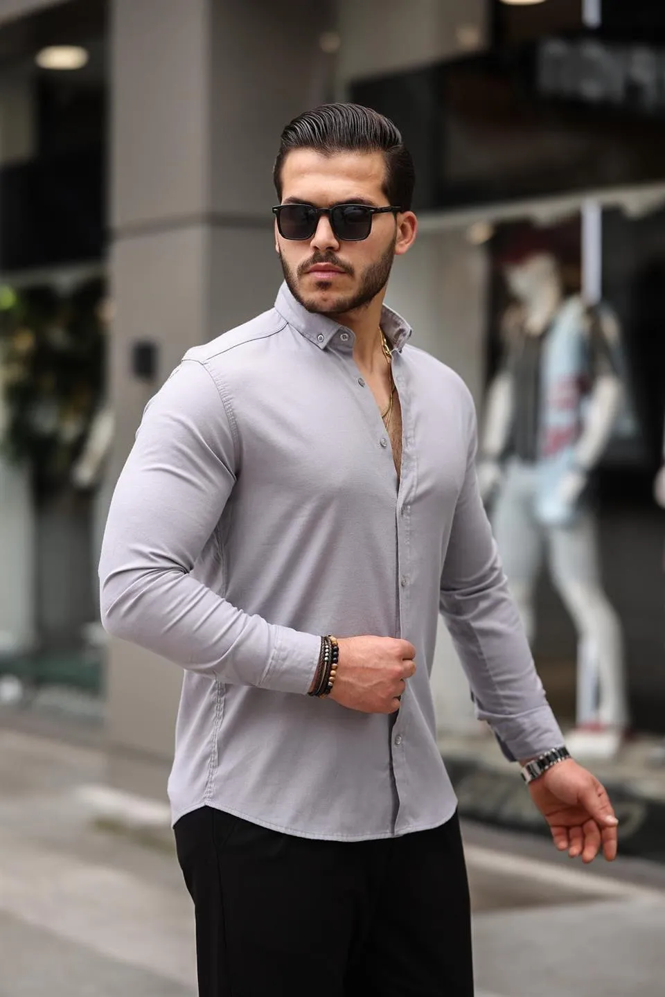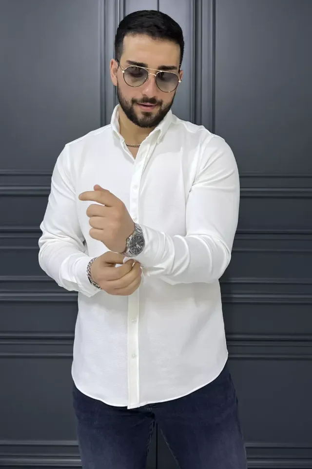 قميص رجالي مريح بأكتاف منسدلة وأكمام طويلة وياقة واسعة. مصنوع من قطن ١٠٠٪ لراحة فائقة. تصميم كلاسيكي بأزرار. قابل للغسل في الغسالة على درجة حرارة ٤٠ درجة مئوية.