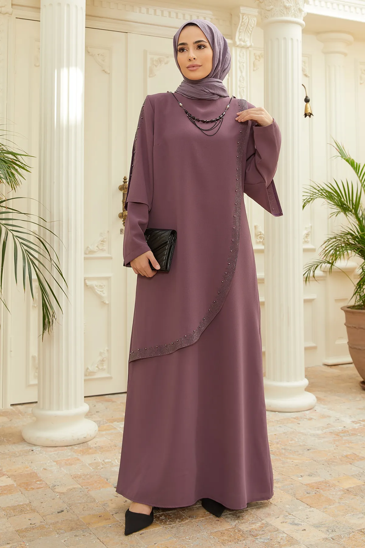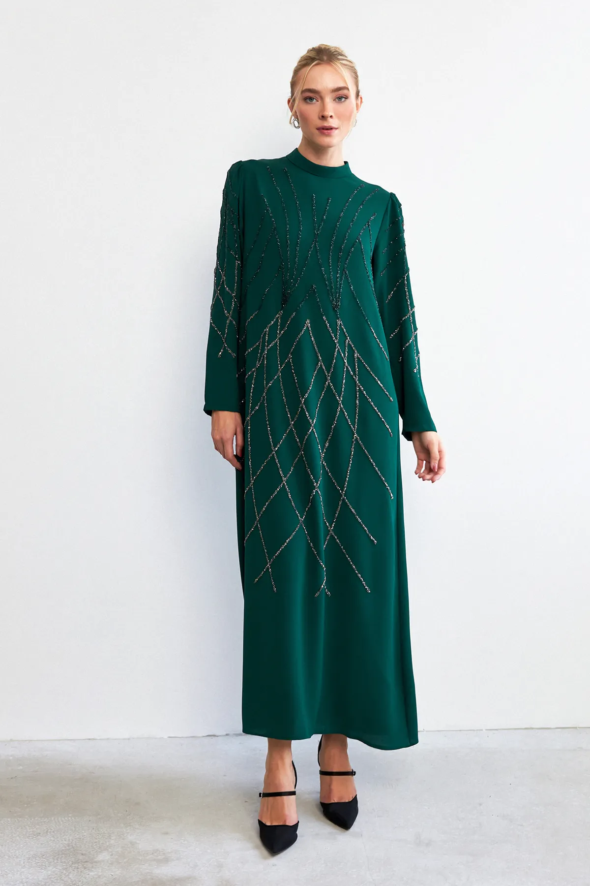 فستان نسائي طويل محتشم مزين بتطريز زهور مع أكمام طويلة وياقة دائرية، تصميم كيوت ومريح للاستخدام اليومي في الصيف.