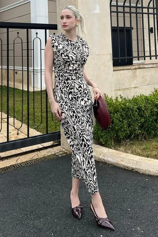 فستان نسائي طويل كلوش مزين بنقشة زهور مع أكمام فراشة قصيرة وتصميم صدر مزدوج وحزام خصر مرن وياقة لف