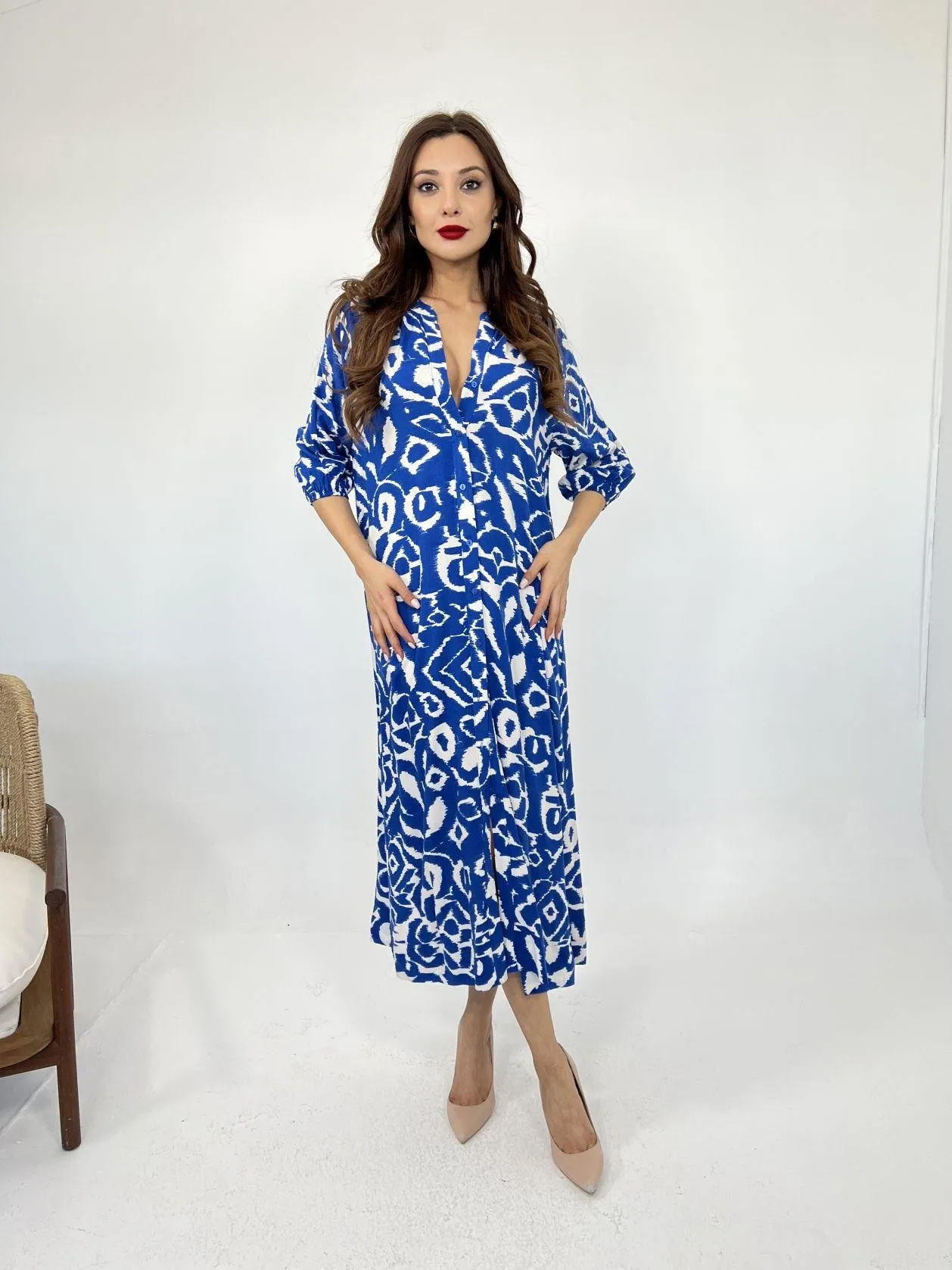 انطلقي براحة في العيد مع فستان ميدي بحمالات وياقة V وأسلوب هالتر يمنحك لمسة أنيقة لكل الطلعات.