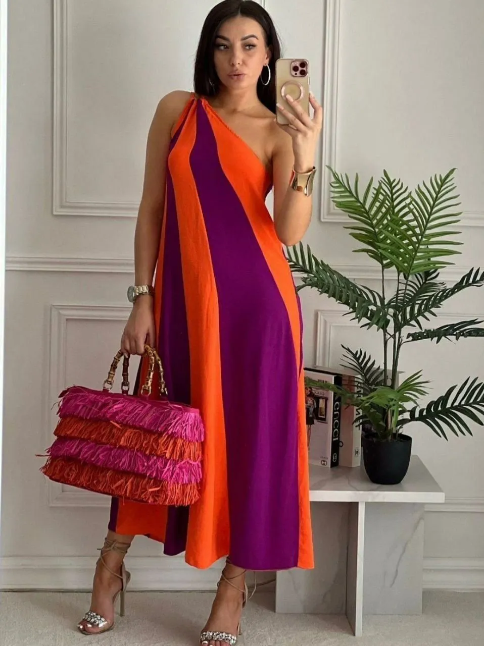 إطلالة عيد عملية مع فستان قصير واسع بفتحة جانبية بياقة دائرية وأكمام قصيرة مريح للطلعات اليومية للنساء.