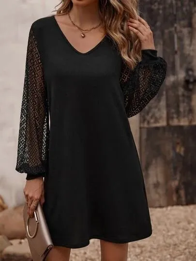 فستان نسائي قصير بياقة V وأكمام كاب وأزرار أمامية مع رباط خصر وجيوب