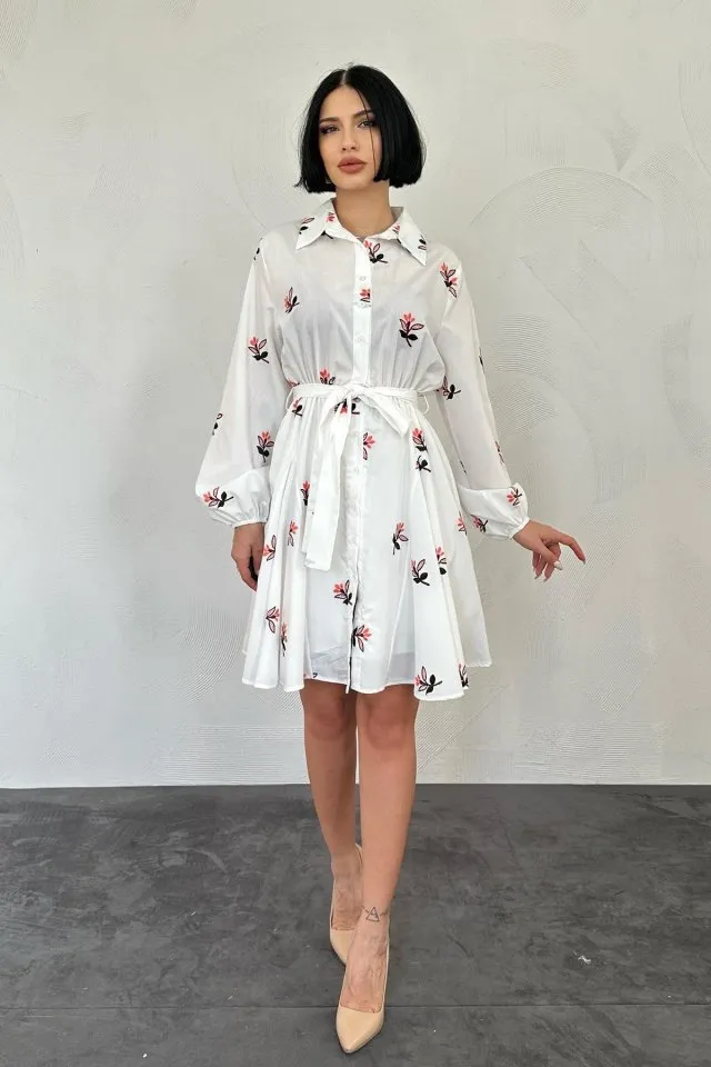 فستان قصير كلوش بأكمام قصيرة عادية وياقة دائرية، تصميم أنيق وخفيف مناسب للصيف والاستخدام اليومي.
