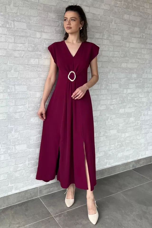 فستان نسائي ميدي كلوش بقماش فيسكوز بياقة هالتر مع حزام خصر مرن وشق جانبي، تصميم أنيق وخفيف للصيف والعيد.