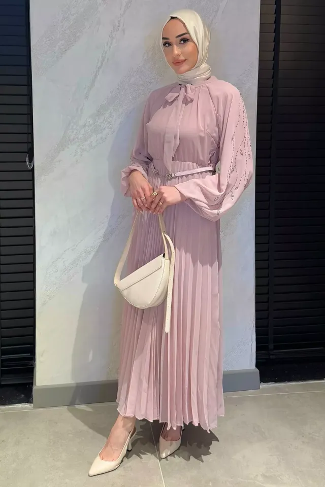 - نوع الأكمام : أكمام واسعة مزمومة من الاسفل
