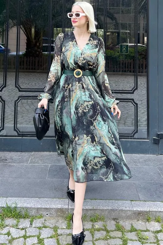 فستان ميدي مخرم بأكمام قصيرة للنساء