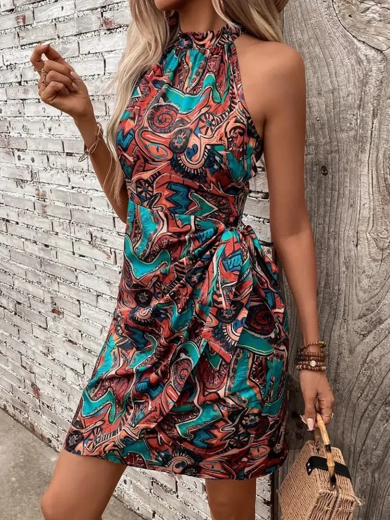 فستان نسائي قصير بأكمام طويلة و تفاصيل أزرار أمامية