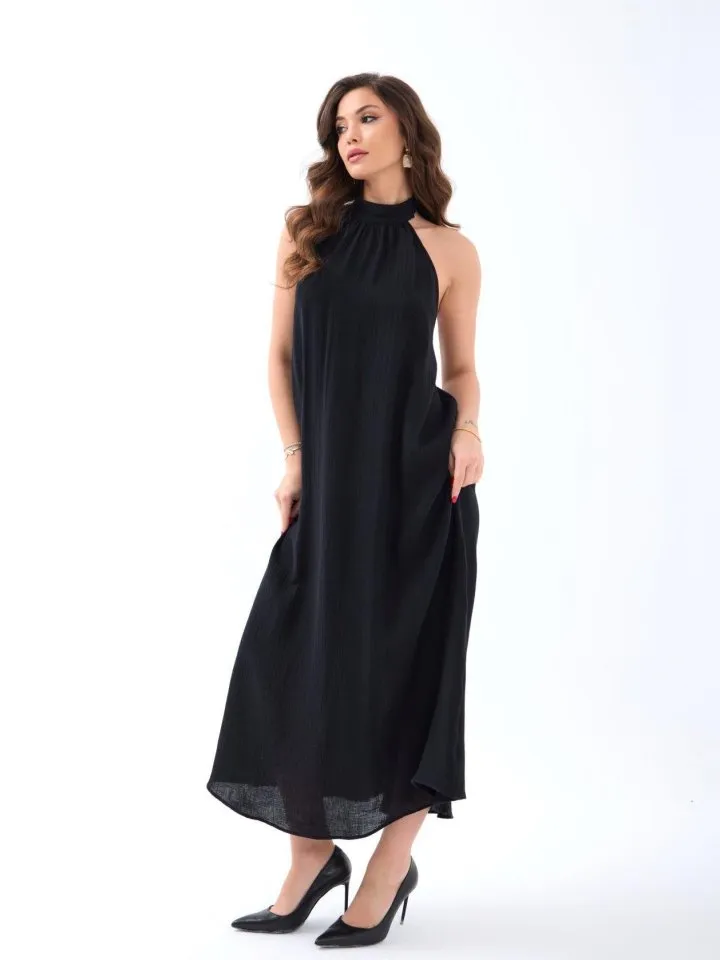 فستان كامي متوسط ​​الطول بياقة على شكل حرف V للنساء